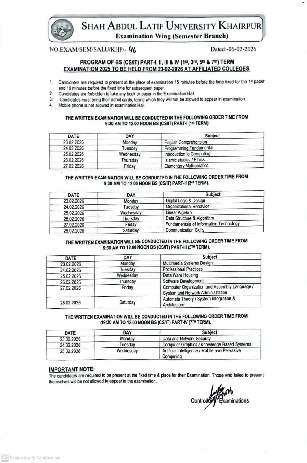 Time Table Download 1st semester time table Download 2nd semester time table Download 3rd semester time table Download 4th semester time table Download 5th semester time table Download 6th semester time table Download 7th semester time table Download 8th semester time table
